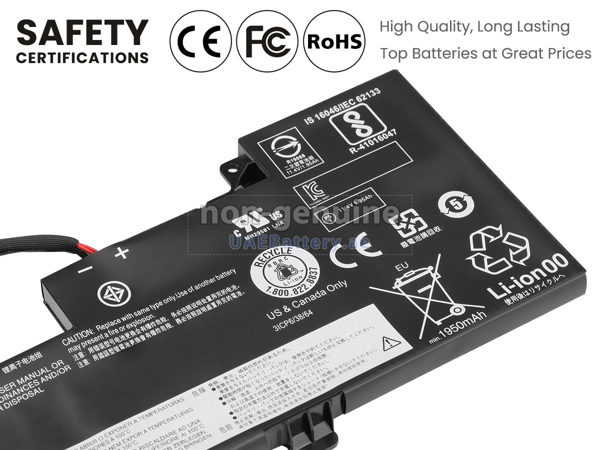 اجتازت كل بطارية Lenovo ThinkPad T480-20L5004WIX مستبدلة سلسلة من شهادات السلامة مثل ECAS، CE، UL والخ، وبالإضافة إلى ذلك، يلزم أن تخضع لسلسلة من الإختبارات الصارمة قبل خروجها من المصنع لحماية استخدامكم الآمن!