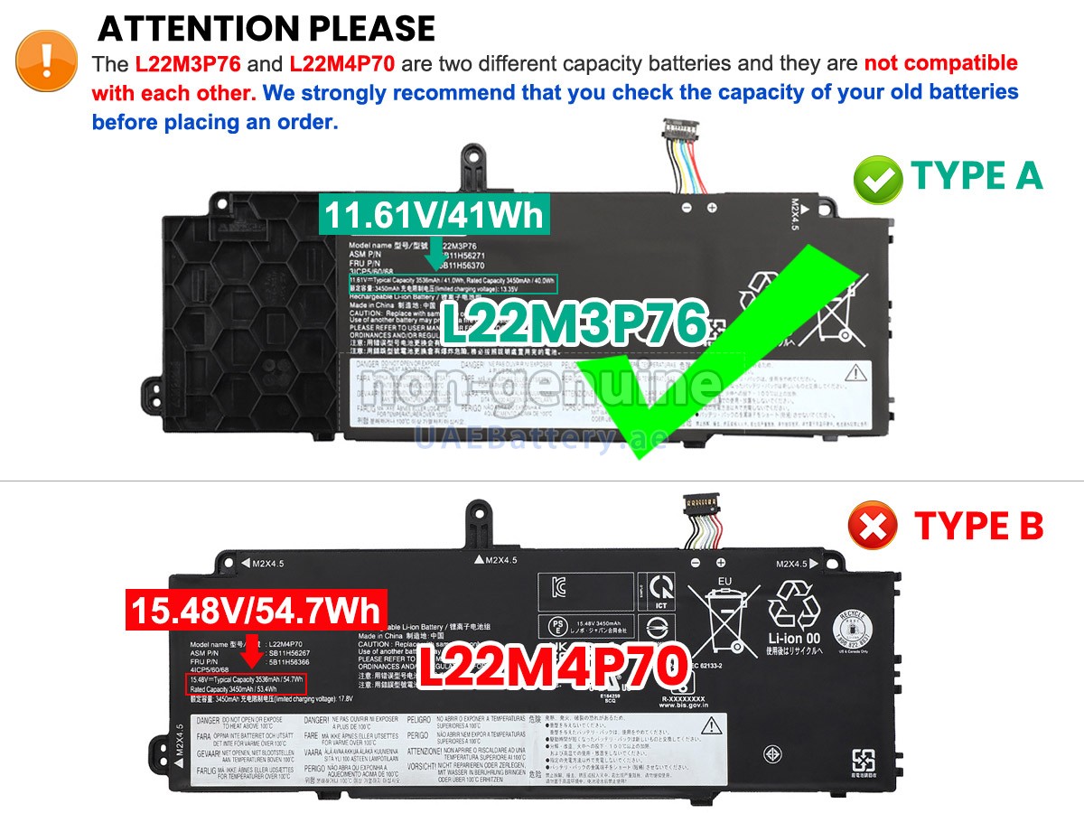 Before placing an order, please open the computer to make sure your battery is L22M3P76 【11.61V, 41Wh】. 3 خلايا41Wh Lenovo ThinkPad X13 GEN 4-21EX0039MZ