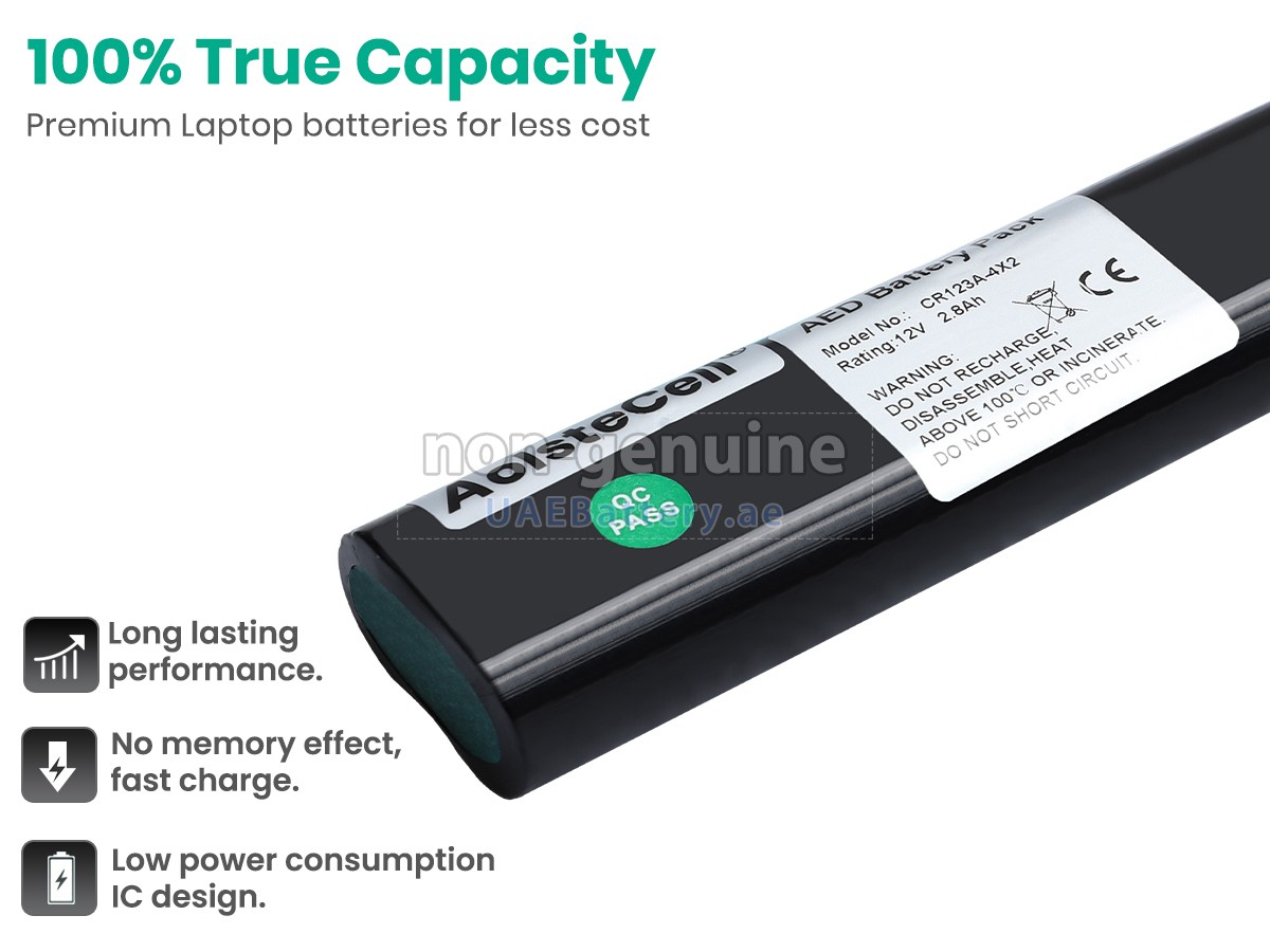 جواب: جميع البطاريات التي تباع على UAEBattery هي بطاريات مستبدل لـOEM. ويستخدم خلايا البطارية والرقائق الذكية من العلامة التجارية الأصلية، ويمكن أن تنافس أو تتجاوز البطارية الأصلية في الأداء وتجرية الإستخدام. وهكذا يتم التخلص من قسط العلامة التجارية ولا تتأثر الجودة. في الواقع، يتم أيضا عملية التجميع لبطارية AED-7000L الأصلية باستخدام ملحقات من الطرف الثالث المختلفة، وقامت بتثبيت علامتها التجارية الخاصة بها على البطارية قبل البيع فقط. ففي UAEBattery يمكنكم شراء منتجات عالية الجودة بأسعار معقولة!
