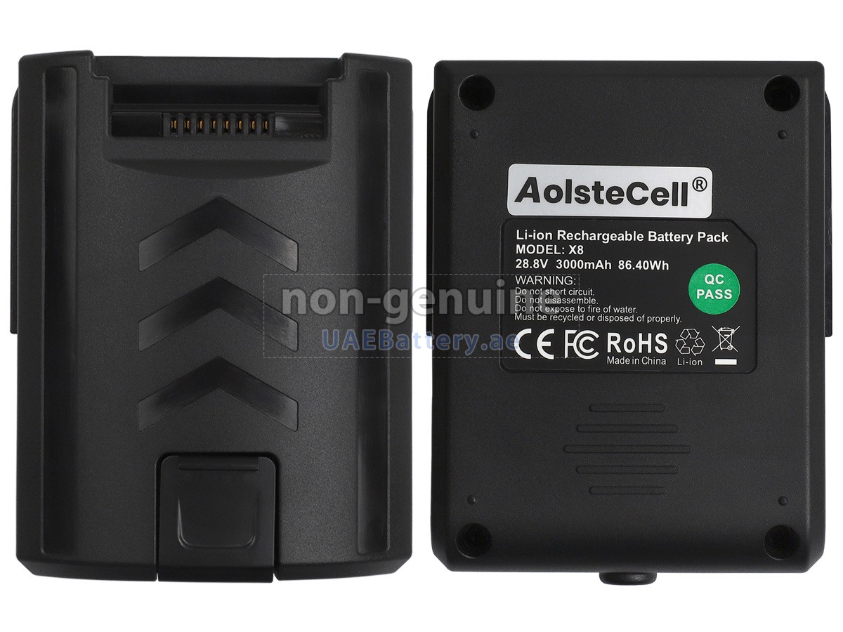 جواب: جميع البطاريات التي تباع على UAEBattery هي بطاريات مستبدل لـOEM. ويستخدم خلايا البطارية والرقائق الذكية من العلامة التجارية الأصلية، ويمكن أن تنافس أو تتجاوز البطارية الأصلية في الأداء وتجرية الإستخدام. وهكذا يتم التخلص من قسط العلامة التجارية ولا تتأثر الجودة. في الواقع، يتم أيضا عملية التجميع لبطارية X8 الأصلية باستخدام ملحقات من الطرف الثالث المختلفة، وقامت بتثبيت علامتها التجارية الخاصة بها على البطارية قبل البيع فقط. ففي UAEBattery يمكنكم شراء منتجات عالية الجودة بأسعار معقولة!