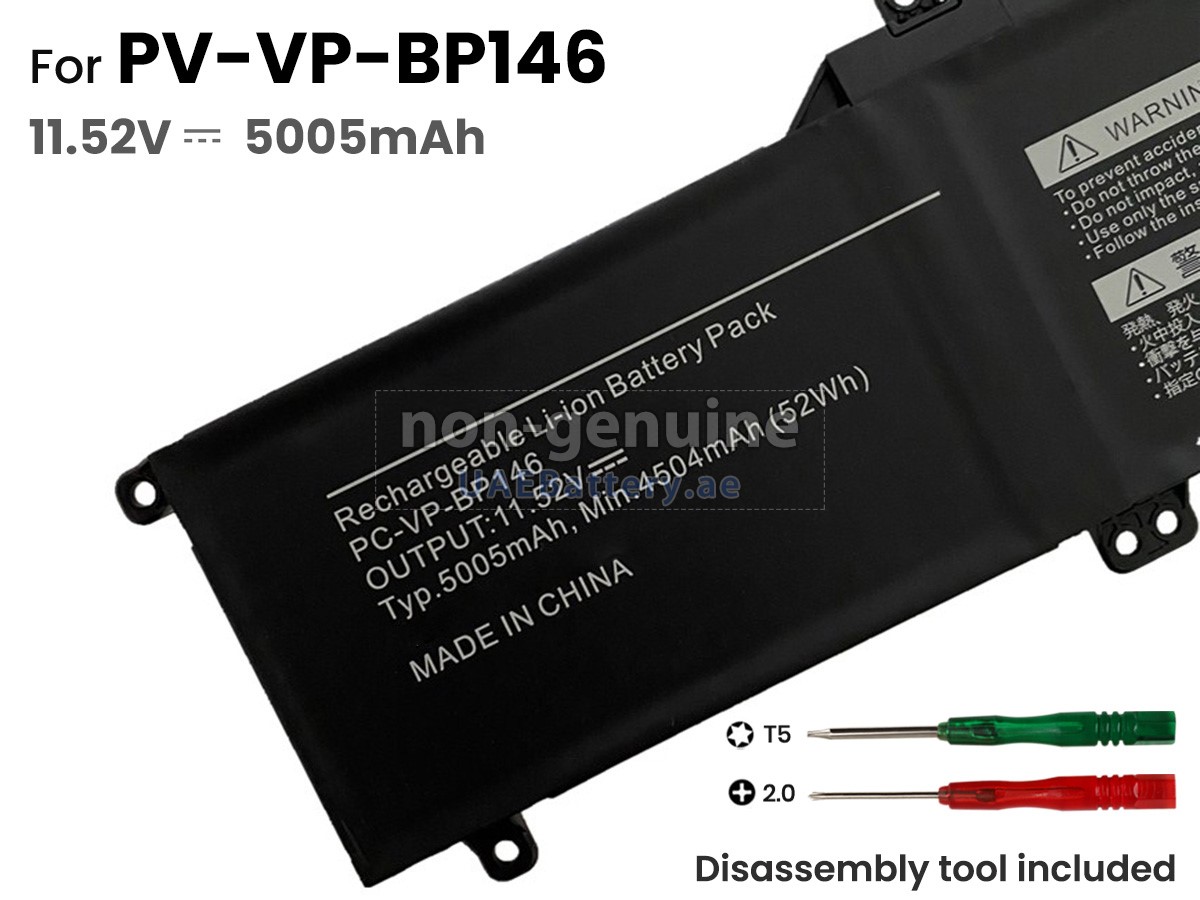 تتوافق البطارية NEC PC-VP-BP146 المستبدلة مع مواصفات الشركة المصنعة الأصلية ومتوافقة مع جهاز NEC الخاص بك بنسبة١٠٠٪، ويمكن أن تنافس أو تتجاوز بطارية PC-VP-BP146 الأصلية في الأداء وتجرية الإستخدام.