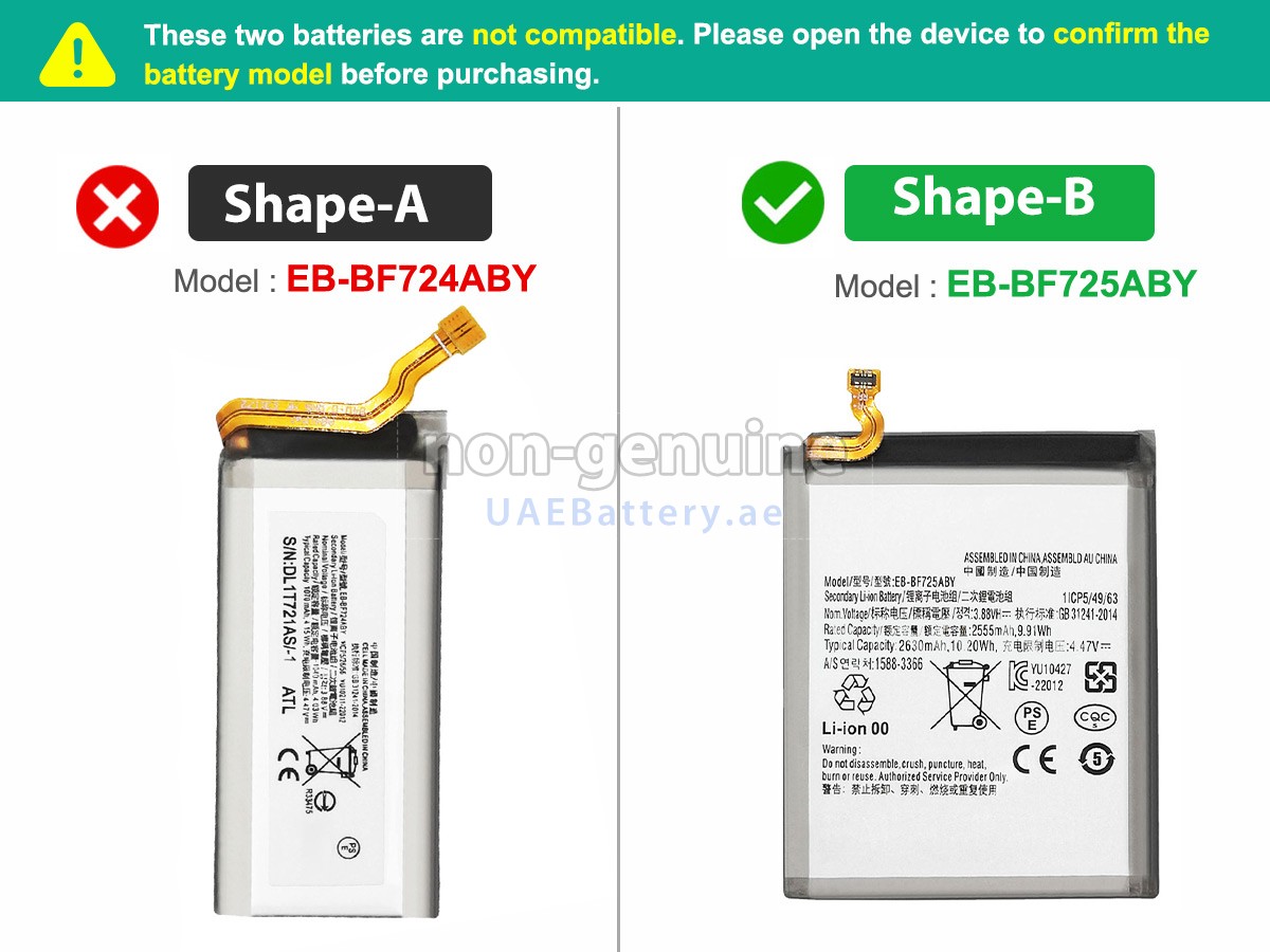 2قم بمقارنة الجهد والسعة للبطارية مع بطارية Samsung GALAXY Z FLIP4 SM-F721B، وتحقق من أن واجهة البطارية وشكلها هما نفس الصور الموجودة على موقعنا.