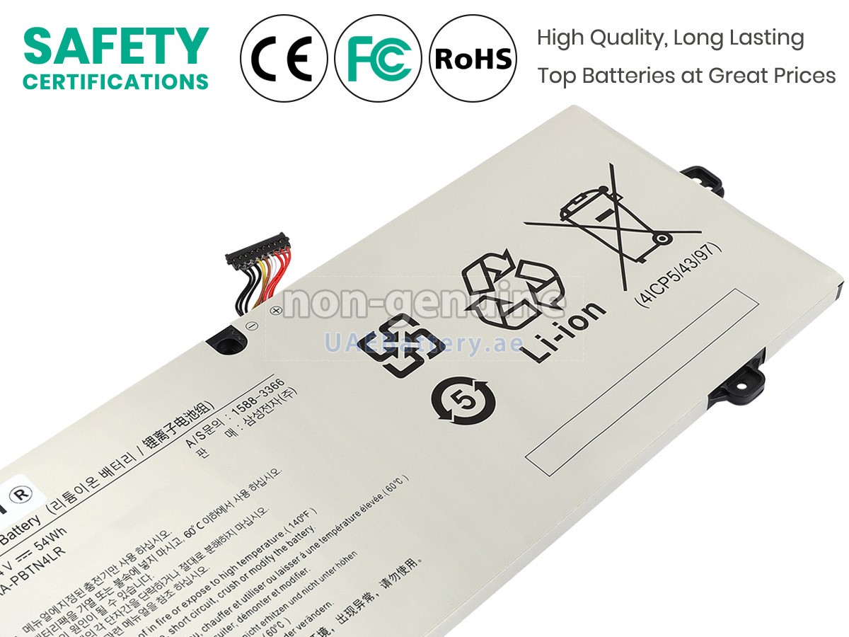 اجتازت كل بطارية Samsung NP940X5M-X03US مستبدلة سلسلة من شهادات السلامة مثل ECAS، CE، UL والخ، وبالإضافة إلى ذلك، يلزم أن تخضع لسلسلة من الإختبارات الصارمة قبل خروجها من المصنع لحماية استخدامكم الآمن!