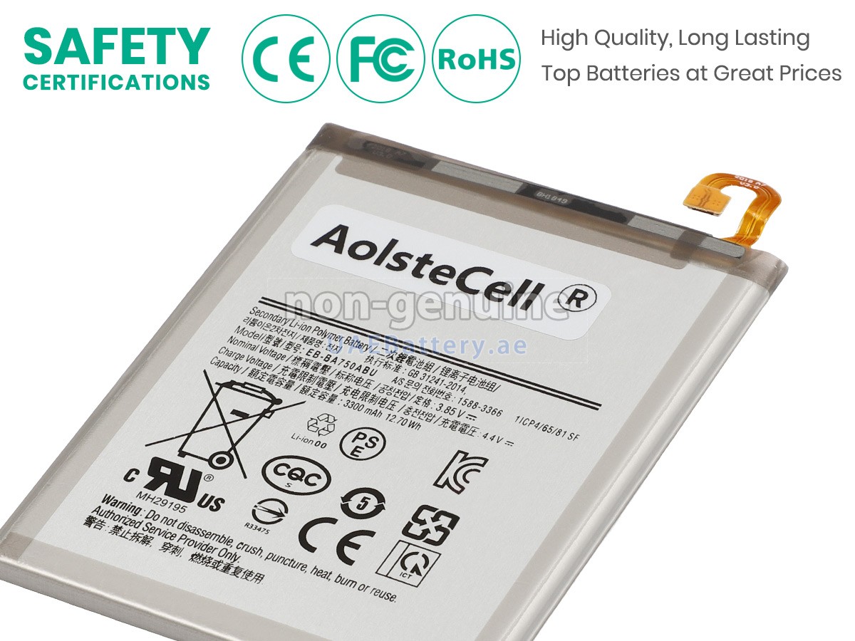 اجتازت كل بطارية Samsung SM-A105F/DS مستبدلة سلسلة من شهادات السلامة مثل ECAS، CE، UL والخ، وبالإضافة إلى ذلك، يلزم أن تخضع لسلسلة من الإختبارات الصارمة قبل خروجها من المصنع لحماية استخدامكم الآمن!