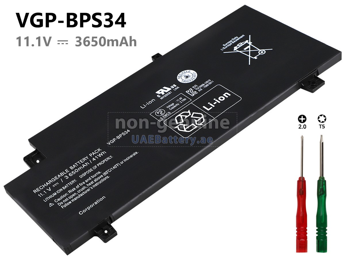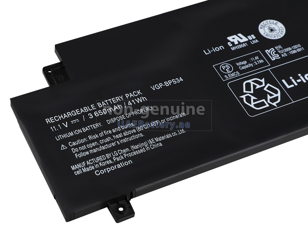اجتازت كل بطارية Sony SVF14A1S2C مستبدلة سلسلة من شهادات السلامة مثل ECAS، CE، UL والخ، وبالإضافة إلى ذلك، يلزم أن تخضع لسلسلة من الإختبارات الصارمة قبل خروجها من المصنع لحماية استخدامكم الآمن!