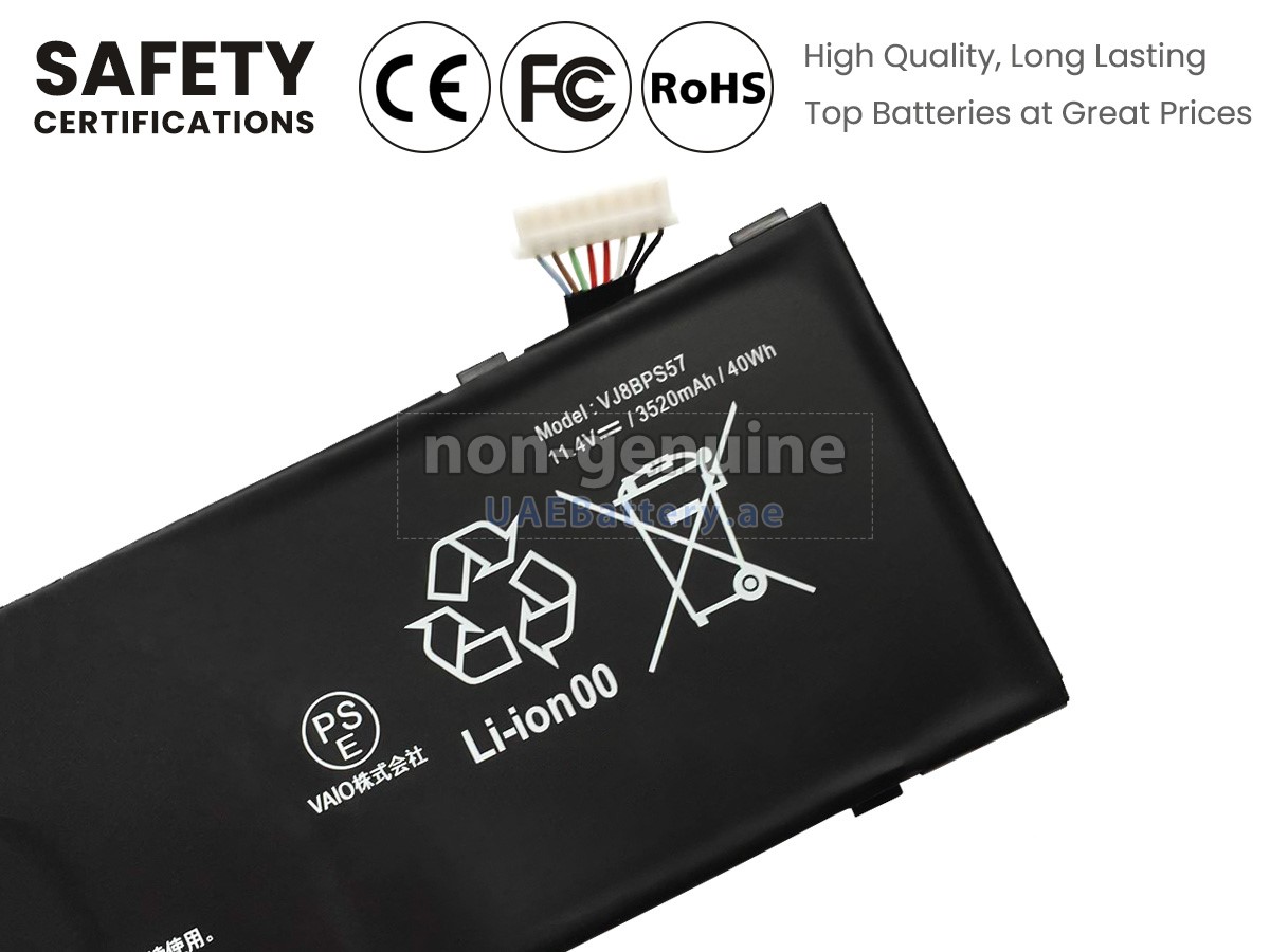 اجتازت كل بطارية Sony VAIO S15 All BLACK Edition مستبدلة سلسلة من شهادات السلامة مثل ECAS، CE، UL والخ، وبالإضافة إلى ذلك، يلزم أن تخضع لسلسلة من الإختبارات الصارمة قبل خروجها من المصنع لحماية استخدامكم الآمن!