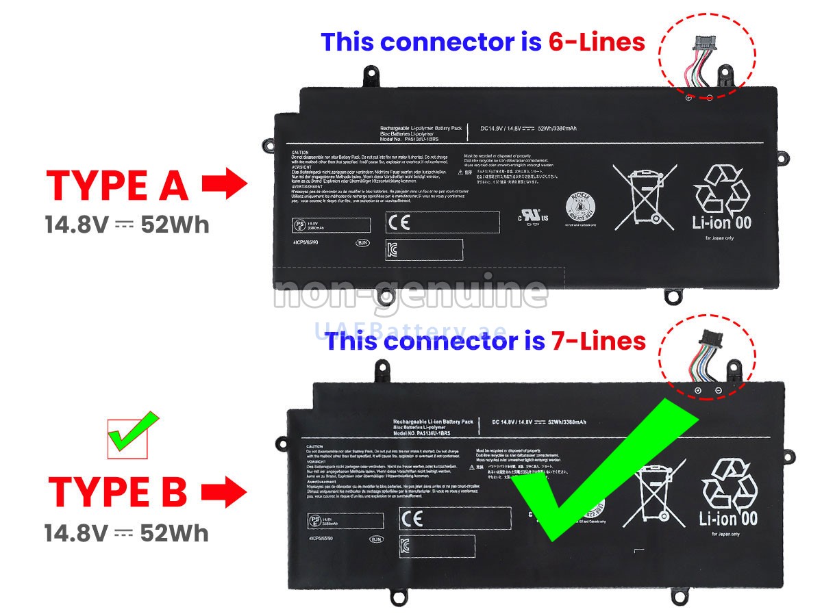 2قم بمقارنة الجهد والسعة للبطارية مع بطارية Toshiba Satellite Z30-B-15M، وتحقق من أن واجهة البطارية وشكلها هما نفس الصور الموجودة على موقعنا.