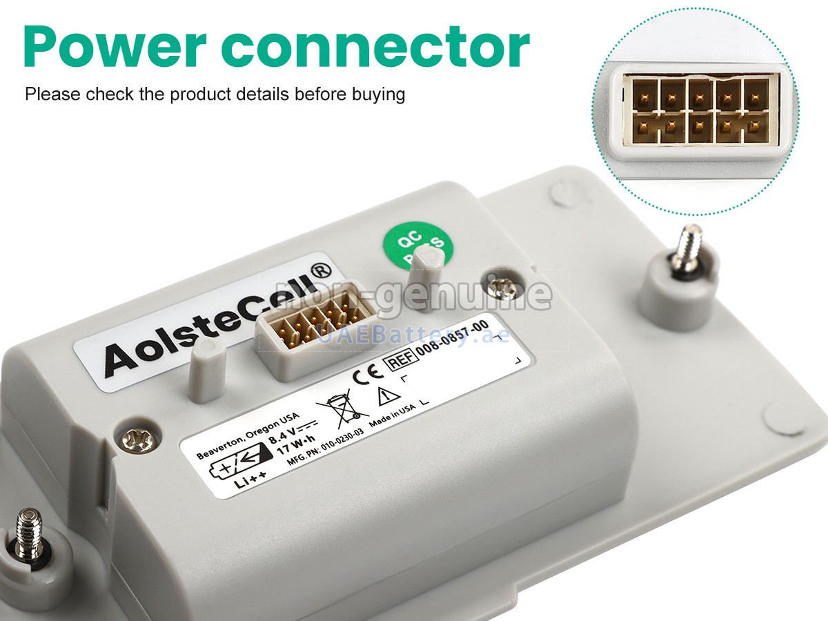 2قم بمقارنة الجهد والسعة للبطارية مع بطارية Welch Allyn PROPAQ LT، وتحقق من أن واجهة البطارية وشكلها هما نفس الصور الموجودة على موقعنا.