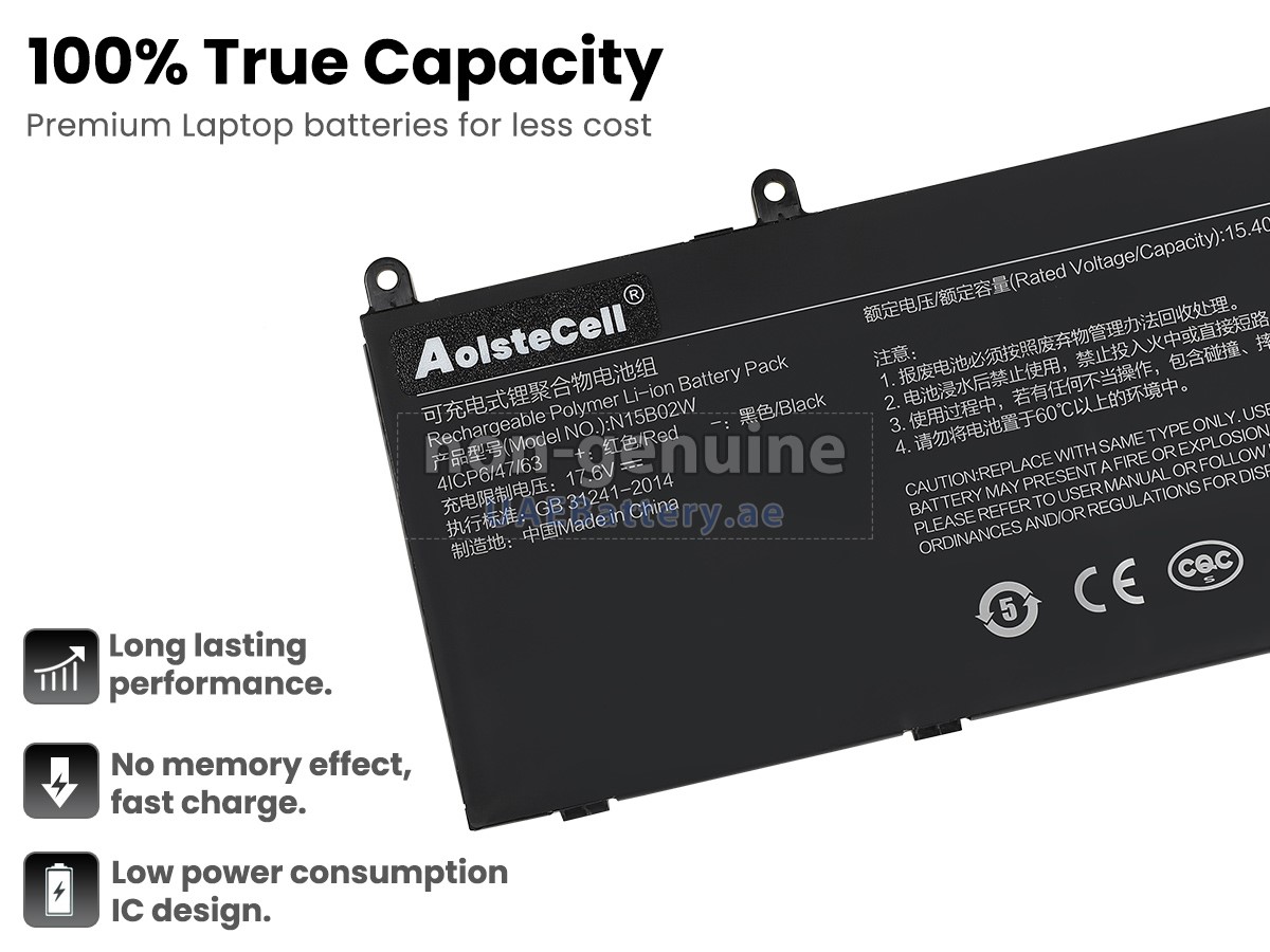 تستخدم كل بطارية XiaoMi MI RUBY 15.6 مستبدلة الخلايا من بطاريات الليثيوم أيون عالية الجودة من الدرجة A+ من الشركات المصنعة الأصلية مثل Samsung وPanasonic وLG والخ، ورقائق لوحة الدوائر الذكية ومواد ABS+PC الصديقة للبيئة مع وظائف مقاومة درجات الحرارة العالية ومقاومة التآكل، مما يمكن ضمان الأداء العالي وتحسين الأمان بشكل كبير في نفس الوقت.