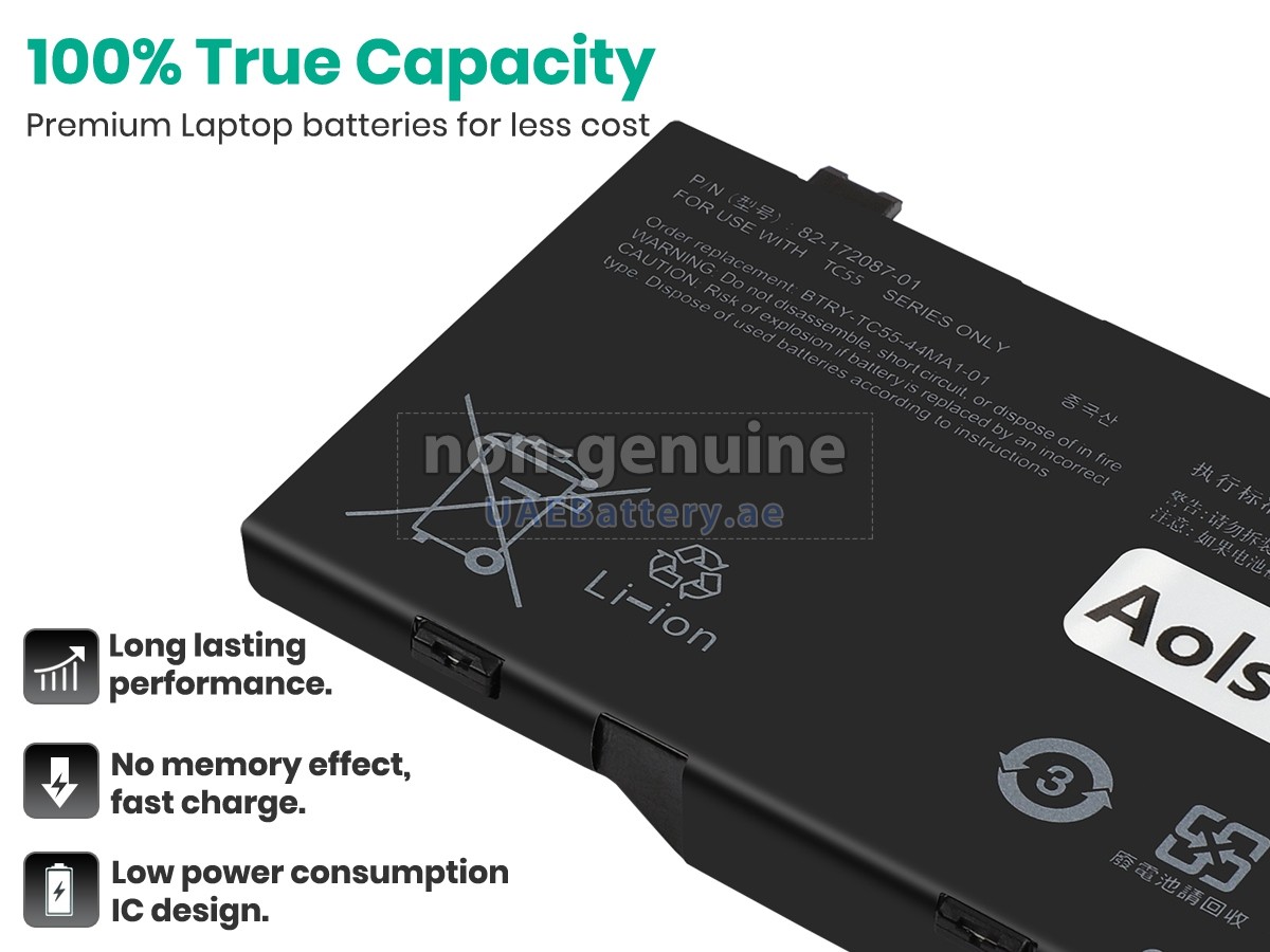 جواب: جميع البطاريات التي تباع على UAEBattery هي بطاريات مستبدل لـOEM. ويستخدم خلايا البطارية والرقائق الذكية من العلامة التجارية الأصلية، ويمكن أن تنافس أو تتجاوز البطارية الأصلية في الأداء وتجرية الإستخدام. وهكذا يتم التخلص من قسط العلامة التجارية ولا تتأثر الجودة. في الواقع، يتم أيضا عملية التجميع لبطارية BTRY-TC55-44MA1-01 الأصلية باستخدام ملحقات من الطرف الثالث المختلفة، وقامت بتثبيت علامتها التجارية الخاصة بها على البطارية قبل البيع فقط. ففي UAEBattery يمكنكم شراء منتجات عالية الجودة بأسعار معقولة!